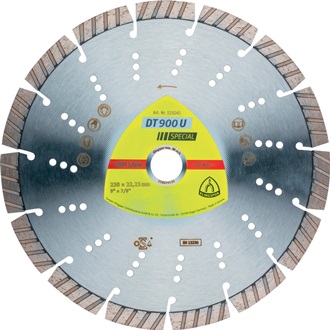 lasergeschweißt / Turbo · für Winkelschleifer · extrem hohe Schnittgeschwindigkeit bei fast allen harten Materialien durch spezielle Turbosegmente · zusätzlich erhöhte Standzeit durch titanbeschichtete Diamanten auch bei armiertem Beton Weitere technische Eigenschaften: · Anwendungsgebiet: Baustellenmaterialien, Beton, universal, Altbeton, armiert, Kalksandstein · Höchstgeschwindigkeit: 80m/s · Nutzungsart: Winkelschleifer · Randausführung: Standard Turbo · Segmentanzahl: 15 · Verpackungsart: Karton