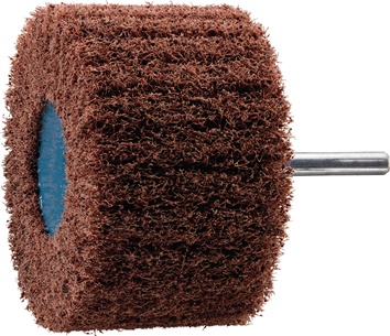 Korund A · Anordnung des Vliesmaterials radial in Lamellenform, wobei bei diesen Polierkörpern die Lamellen extrem dicht gepackt sind und dadurch eine hohe Standzeit erreicht wird · Schaft-Ø 6 mm Weitere technische Eigenschaften: · Schaft-Ø: 6mm