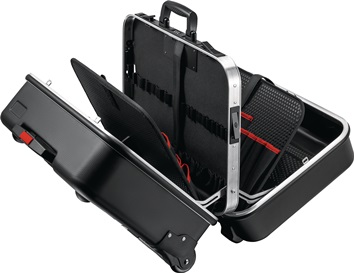 Gesamtbelastbarkeit max. 30 kg · umlaufender Aluminiumrahmen · 2 Metall-Kippschlösser · 3-stelliges Zahlencodeschloss · integriertes Fahrgestell mit Teleskopgriff und leichtgängigen Rollen Außenmaße: 520 x 435 x 290 mm (B x T x H)