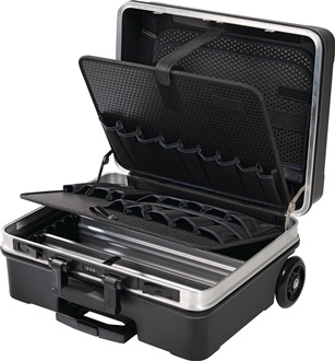rollbar mit hoher Bodenschale · aus ABS-Kunststoff · 3-fach Teleskopauszug · Teleskopgriff für angenehmen Komfort beim Tragen des Koffers · 2 große Inline-Rollen sorgen für ein leichtgängiges Fahren · robuster Aluminiumrahmen mit Stoßkantenschutz · 2 abschließbare Kippschlösser mit Zahlenschloss sorgen für hohe Sicherheit · Tragfähigkeit/Zuladung 30 kg Außenmaße: (B x T x H) 513 x 258 x 435 mm Ausstattung: Bodenschale ist variabel durch Trennstege aus Aluminium unterteilbar, Dokumentenfach im A4-Format Weitere technische Eigenschaften: · Außentiefe: 258mm · Ausstattung: 4 x Werkzeugtafeln · Außenhöhe: 435mm · Außenbreite: 513mm