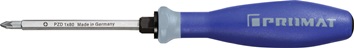 mit Mehrkomponentengriff mit Abrollschutz · 6kant-Klinge aus hochvergütetem Spezialstahl · Schlüsselhilfe · matt verchromt · Größenleitsystem · für Schrauben mit Kreuzschlitz (PZD) Weitere technische Eigenschaften: · Ausführung: 6-Kant Klinge / Ansatz · Material: hochvergüteter Spezialstahl
