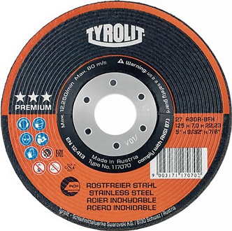 • Schruppscheibe PREMIUM D125xS7mmKörnung 30 gekr.Bohr.22,23mm TYROLIT