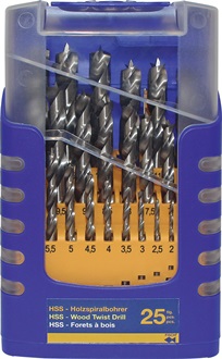 • Holzspiralbohrersatz 013G 25-tlg.D.1-13mm 0,5mm steig.HSS FISCH-TOOLS